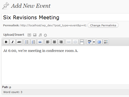 点击添加新事件(Add New)你可以像发表一般文章一样来添加新的事情,如下图: