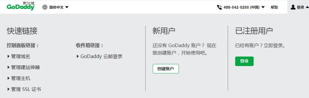 输入godaddy.com的主域名后,网站自动根据我的ip跳转到了新加坡站https://sg.godaddy.com/zh