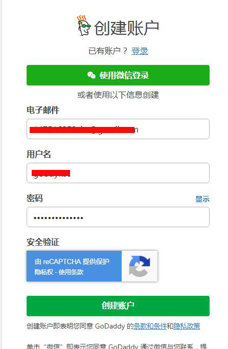 输入联系邮箱,用户名,密码之后,再点击底部绿色的创建账户按钮.