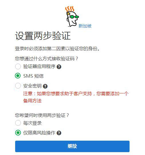 三个验证方式中根据自己的 喜好选择其中一个,我选择的是短信验证,出现了下面的新界面,如下图: