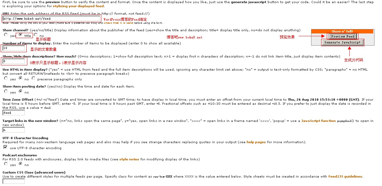 利用Feed2js提供的feed的JS生成调用功能。