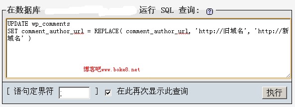 - 点击执行即可完成Wordpress博客留言评论者的网址的更换。