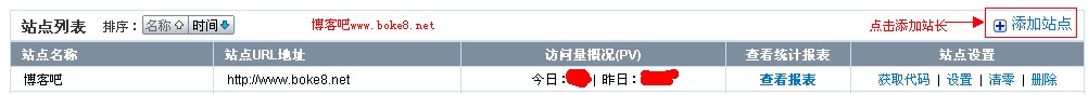 - 登陆成功后,在站点列表页面点击右边的“添加站点”添加网站