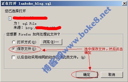 点击“执行”后,保存.sql格式的数据库文件(如果选择了压缩方式,后缀名将会不同,变成.zip或.gzip),看图: