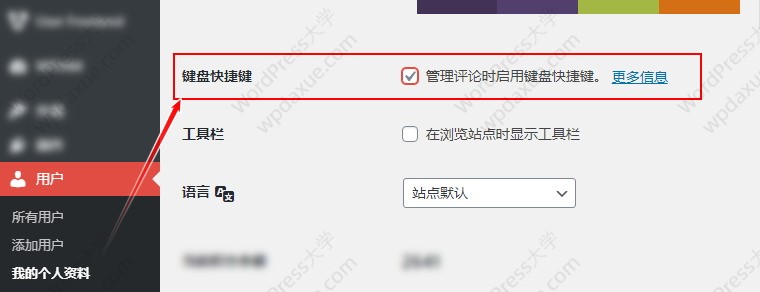 WordPress快捷键可对评论执行操作: